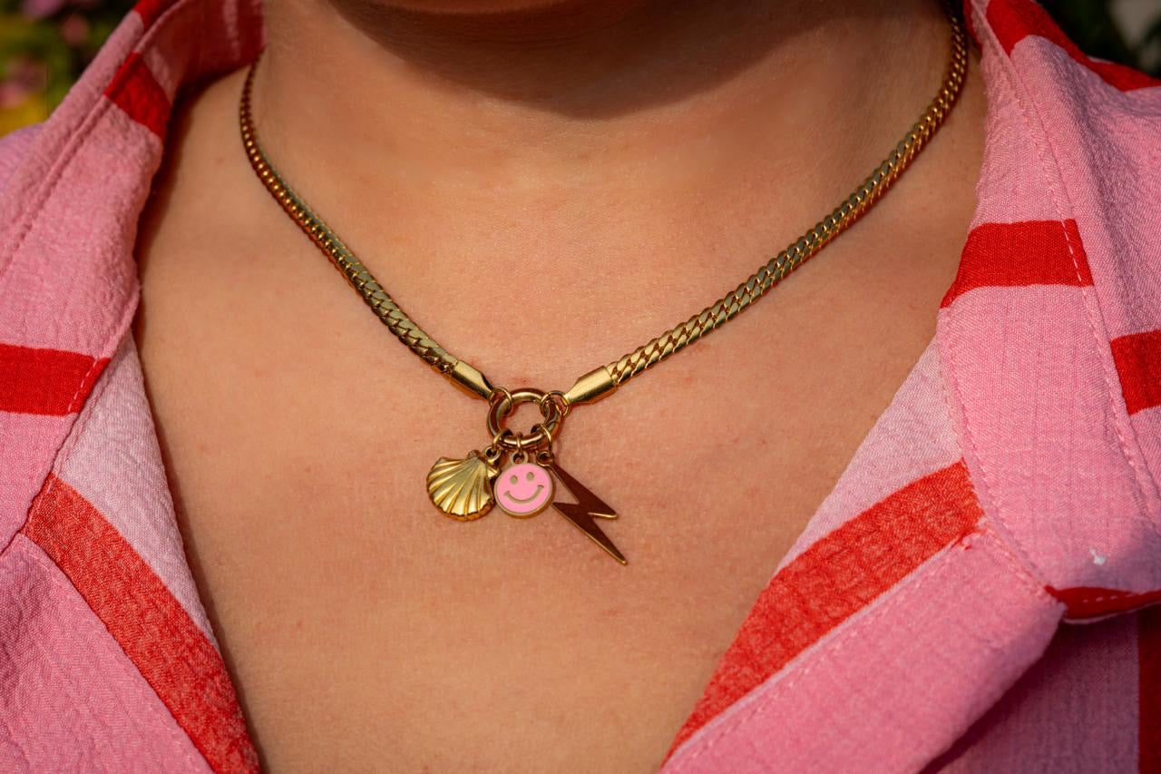 Give your chain necklaces and bracelets a pop of colour with our Pink Smiley charm. It is a symbol of happiness and positivity that you can add to a variety of chain types.